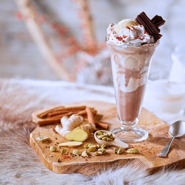 magere melk, suiker, kokosnootvet, glucosestroop, hazelnootpasta (5%), weiproduct, emulgator (mono- en diglyceriden van vetzuren), stabilisatoren (guarpitmeel, johannesbroodpitmeel), aroma, Kan eieren, pinda's, andere noten bevatten.