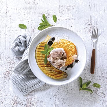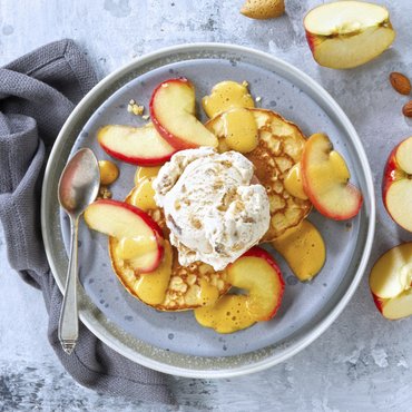 Leg de pancakes op een met bakpapier beklede bakplaat en bevochtig deze met wat water. Voorverwarmen 150 °C, ca. 9 minuten.