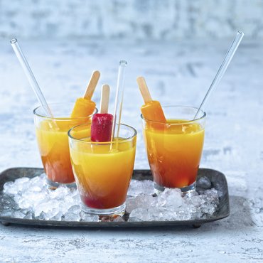 Heerlijke waterijsjes gemaakt van echt vruchtensap! Een selectie van drie smaken: citroen, kers en sinaasappel. De verpakking bevat 27 ijsjes.