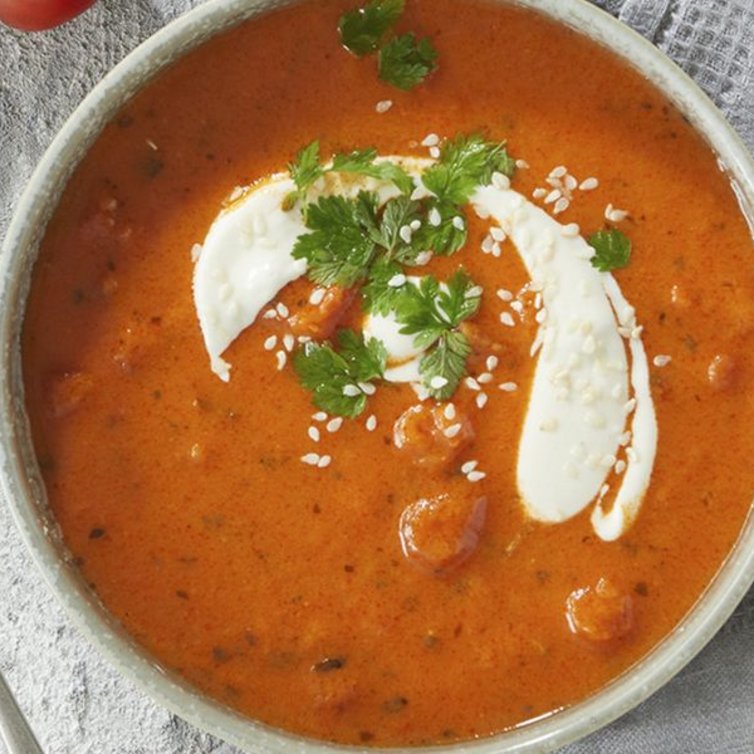 Tomatensoep met zure tahini-room