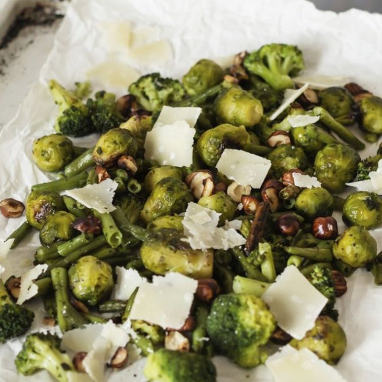 Groene ovengroenten met Parmezaanse kaas en hazelnoot