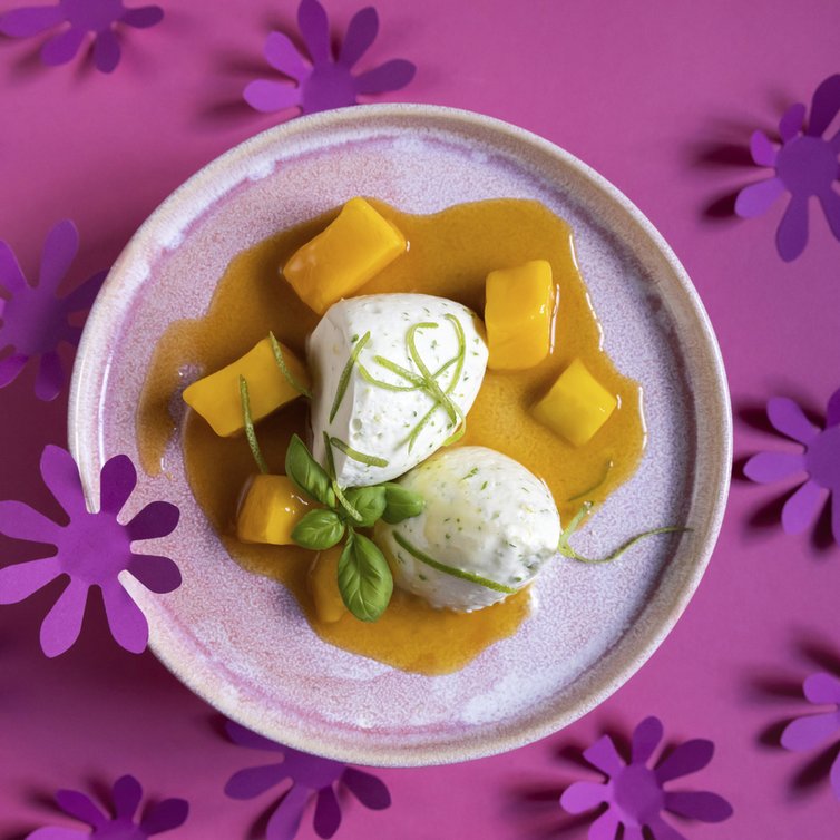 Joghurt-Basilikummousse mit Mangoragout (von Johann Lafer)