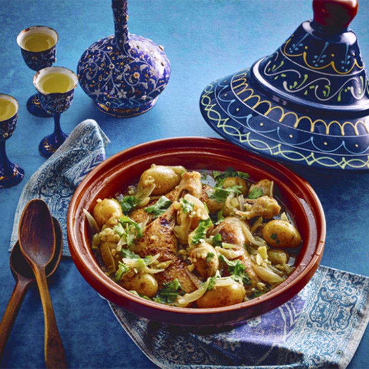 Een tajine is een soort pot, die traditioneel wordt gebruikt in de Oosterse keuken. Het aantal gerechten dat u kunt bereiden in een tajine is enorm. Zo hebben wij voor u vandaag een heerlijke variatie met kip, olijven en citroen.