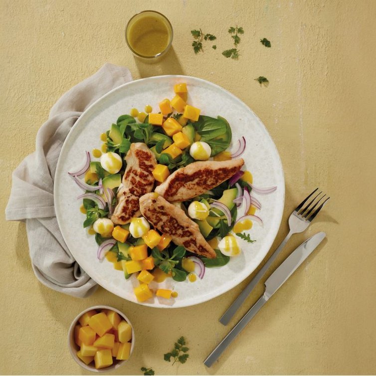 Mango-avocadosalade met kipfilethaasjes
