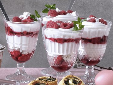 Laagjesdessert met frambozen en meringue
